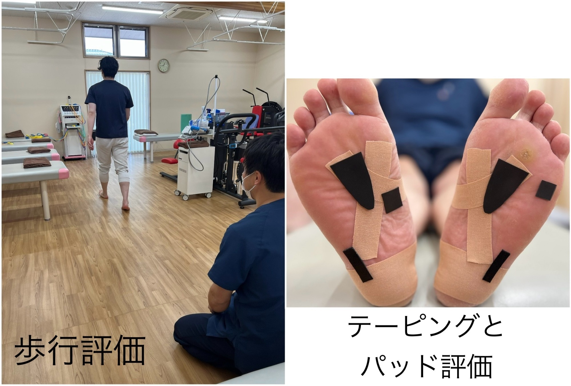 インソールは従来、足型を採型して作製されてきました。当院では、テーピングやパッドを使用しながら「動き」が良くなるよう、その人の動きを見て作製しています。県南の病院で唯一「動き」を重視しているオーダーメイドインソールを理学療法士が作製しています。