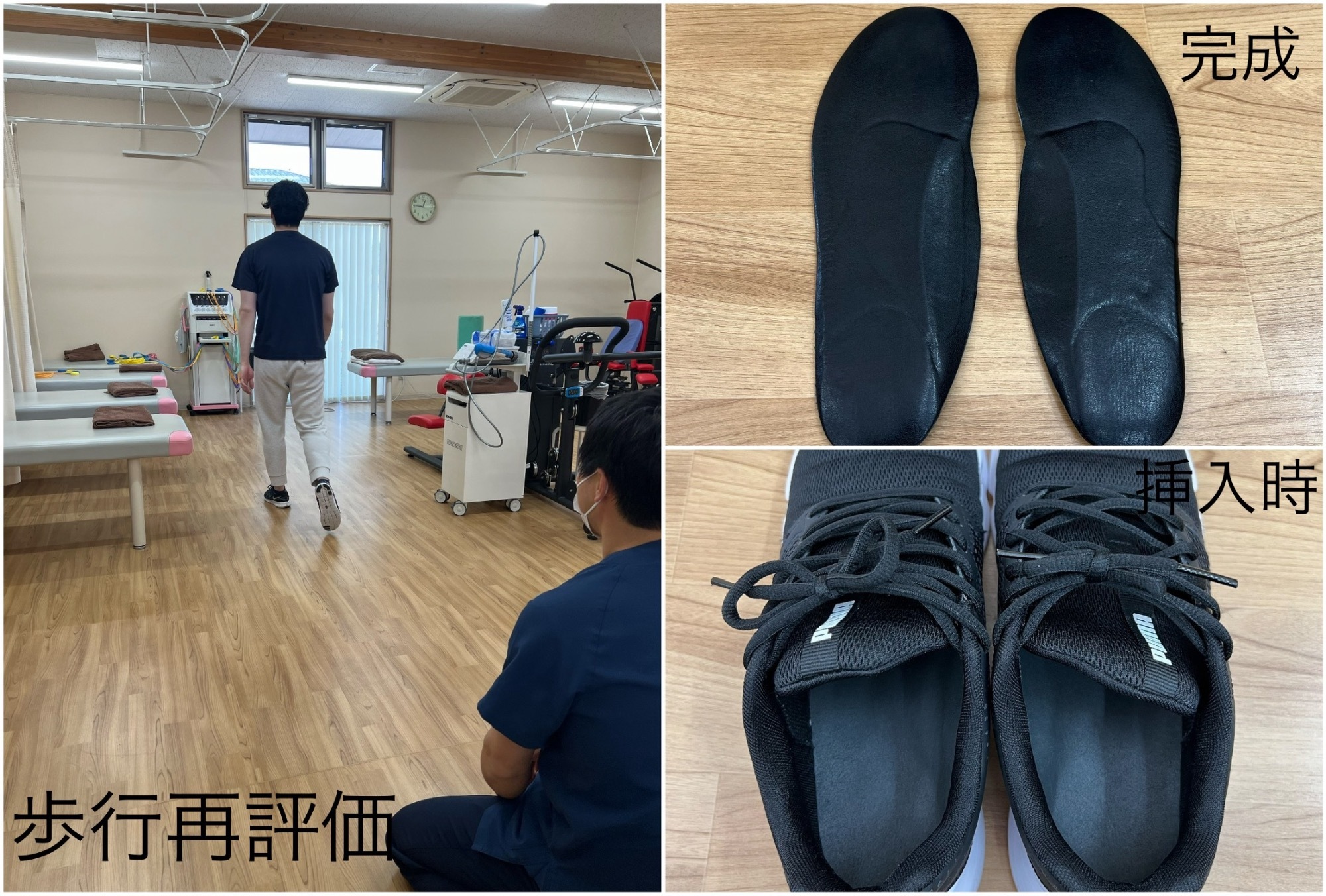作成したインソールを実際に履いて、再度歩きなどの動きを確認し完成です。